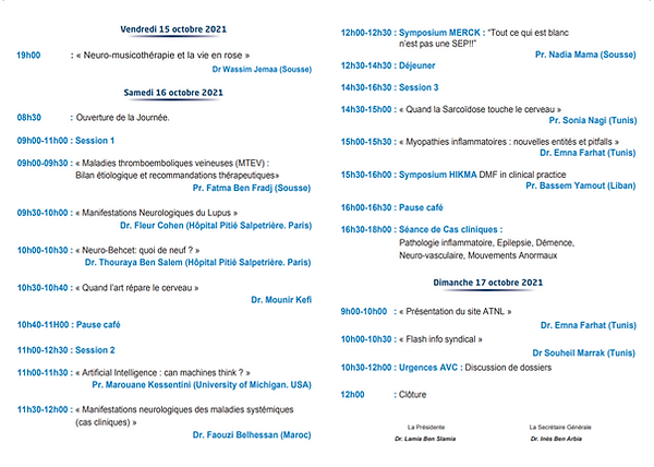 Monastir, Octobre 2021. Thème: les manifestations neurologiques des maladies systémiques.
